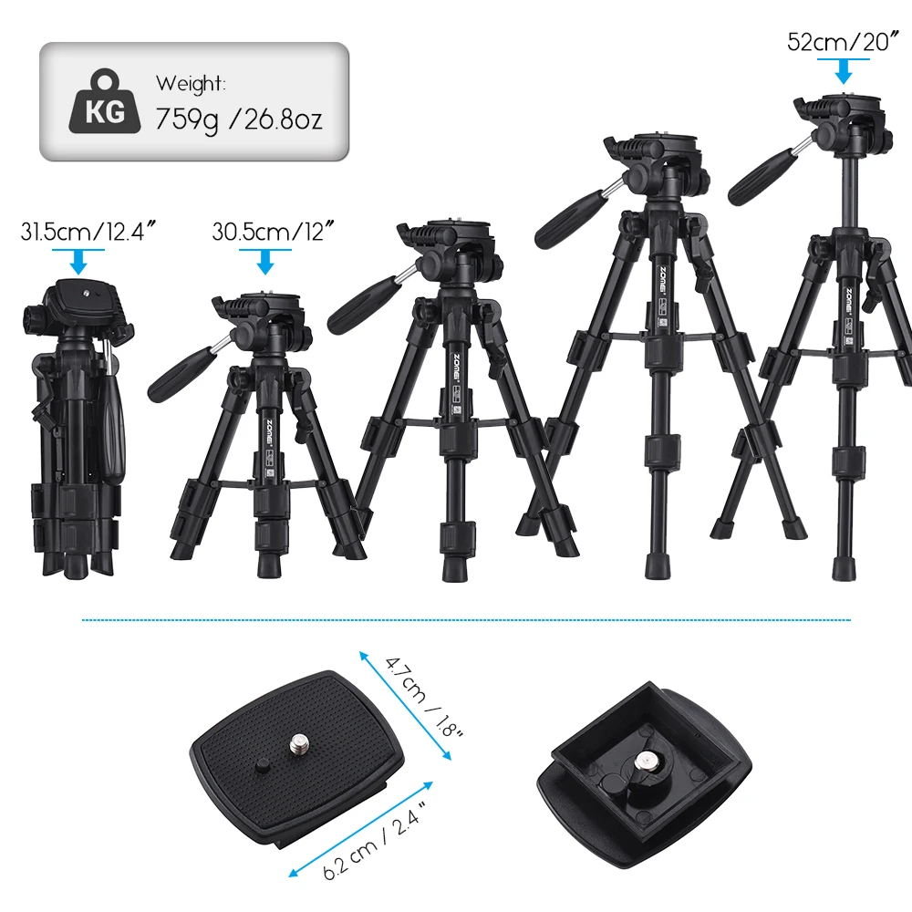 ZOMEI Q100 Lightweight Mini Tabletop Tripod Portable Camera Travel Tripod w/ Quick Release Plat for Canon Nikon DSLR Smartphone