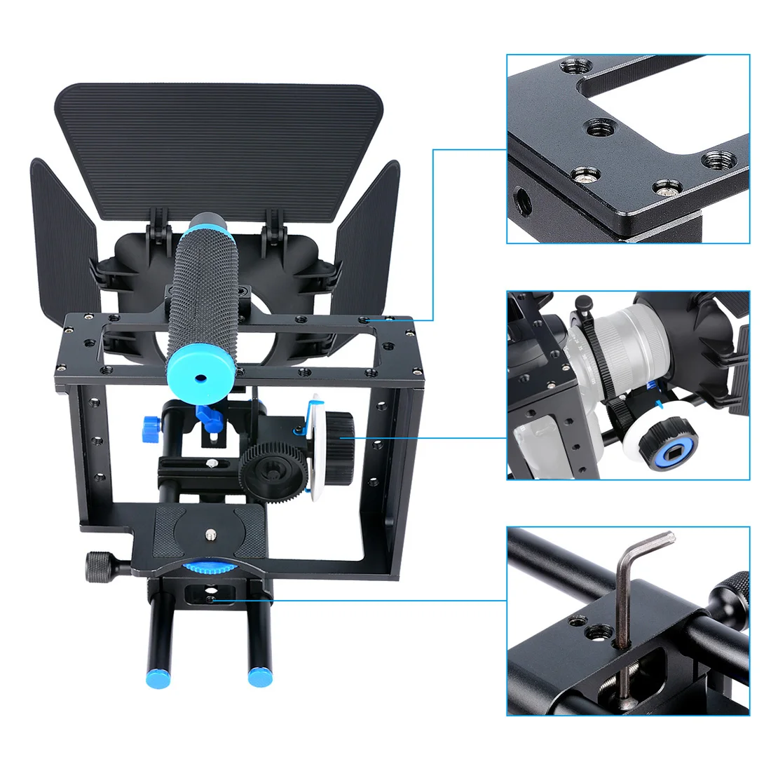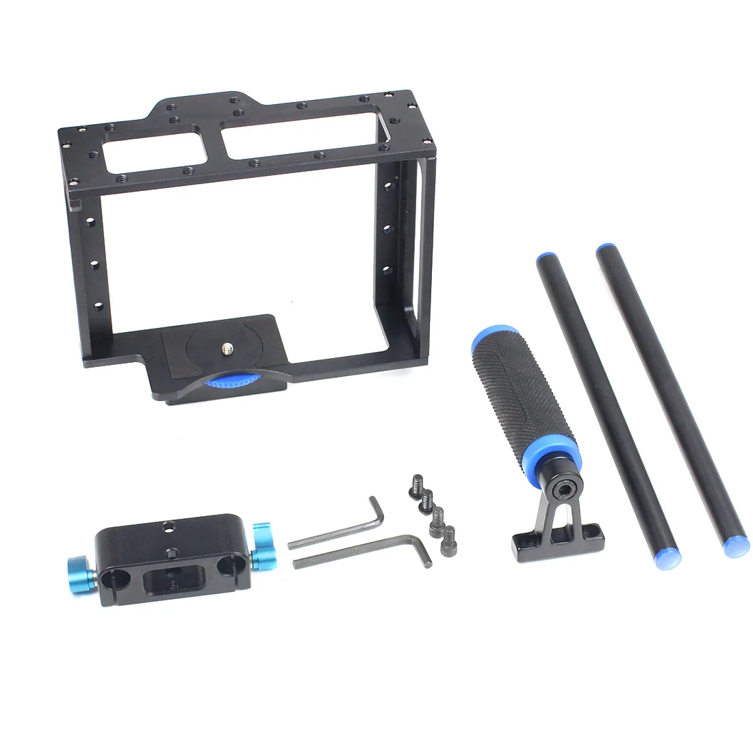 Camera Cage for 15mm Rail Rod Follow Focus Rig Cage Movie Kit Film Making System for Sony/Canon/Panasonic DSLR Camera Camcorder
